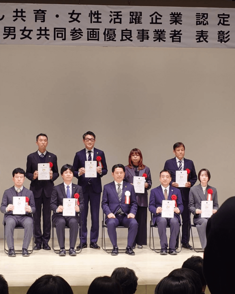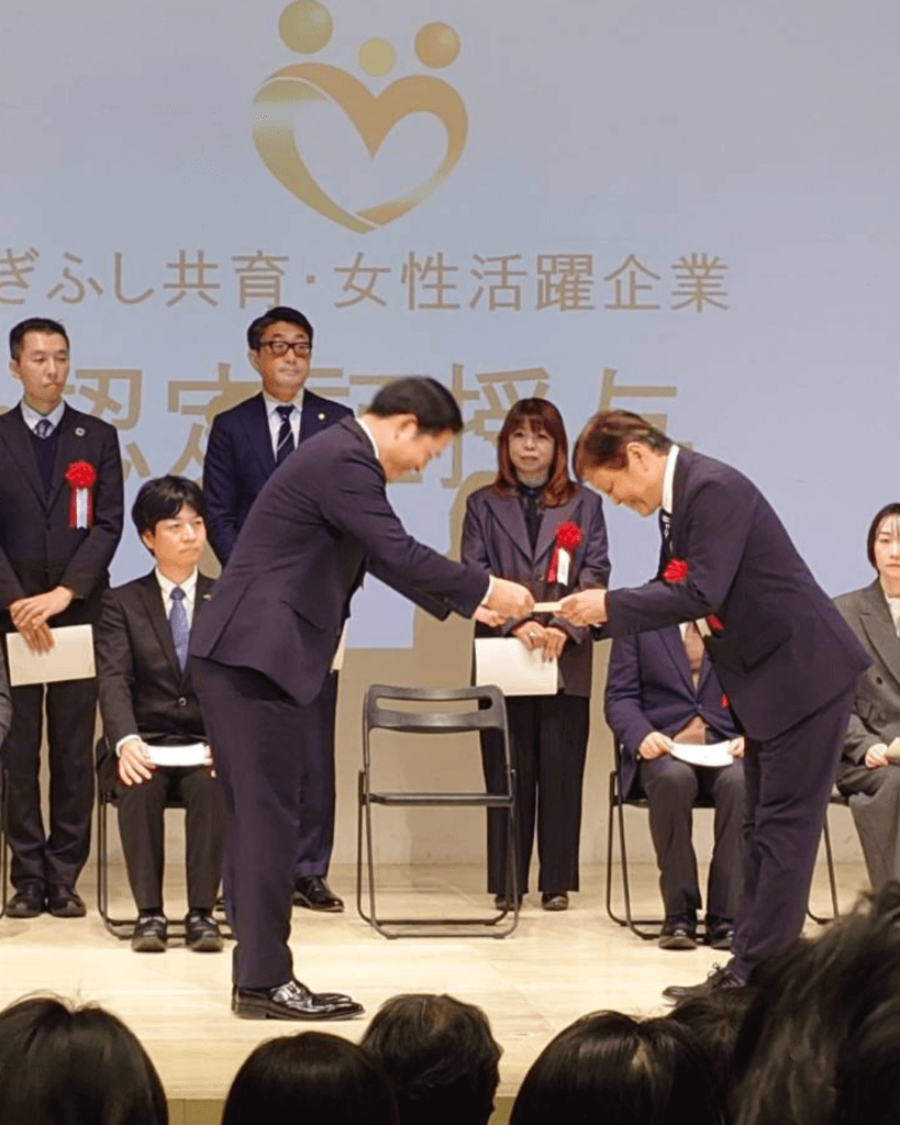 ぎふし共育・女性活躍企業の認定式がメディアコスモスにて行われました。弊社は令和元年度から継続して認定されており、2回目の更新となりました。